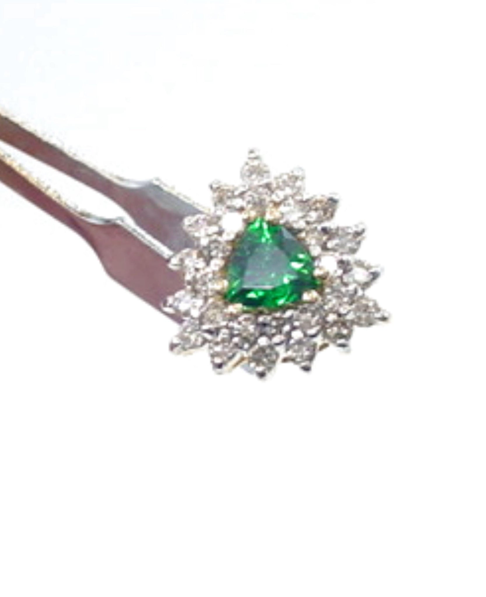 • 2 triangle shaped tsavorite garnets weighing approximately 1.10 – 1.15 carats total