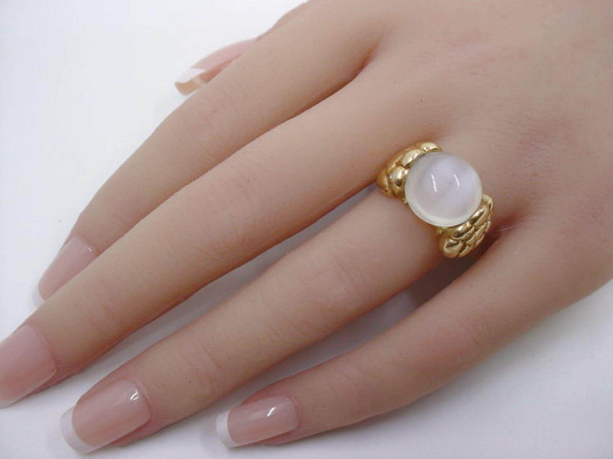 Rare Cat's Eye Moonstone Art Nouveau Floral Mounting 14k Gold Cocktail Ring