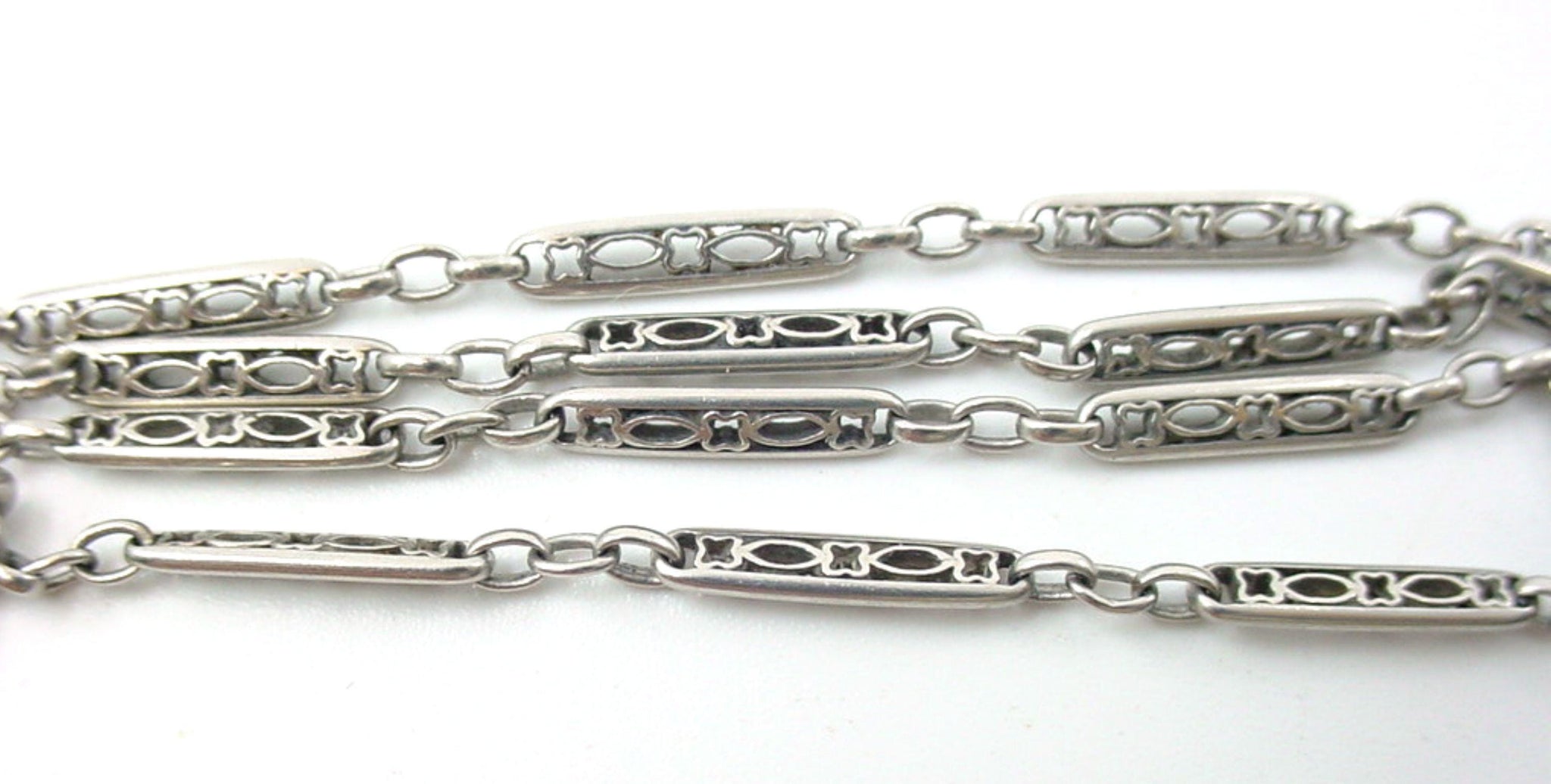 Unusual Platinum Open Fancy Link Watch Chain Choker Necklace