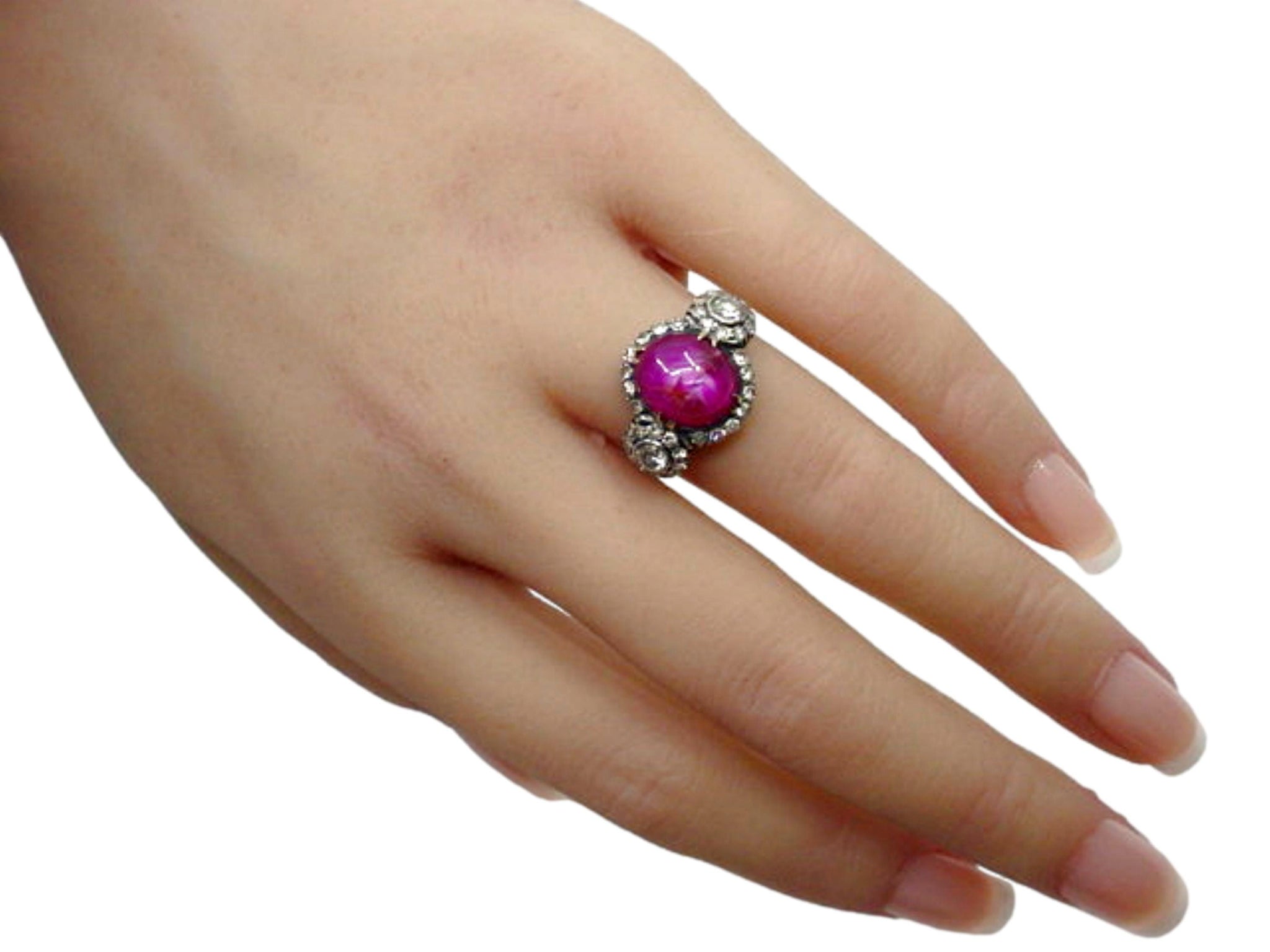 Rare Antique Star Ruby Diamond Gold Silver Engagement Cocktail Ring