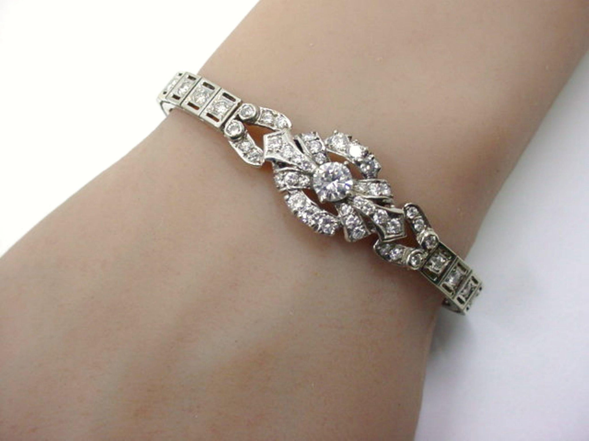 Vintage 2.75 Ct. Diamond 14k White Gold Embellished Front Bracelet