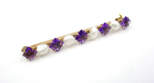 Lovely Victorian Amethyst Pearl 14k Yellow Gold Bar Brooch Pin