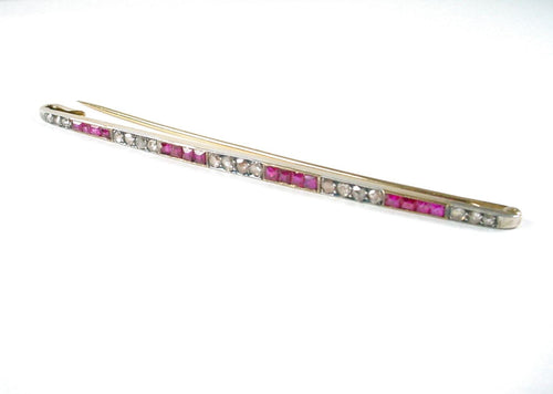 Lovely Victorian Ruby Diamond 14k Yellow Gold Bar Brooch Pin