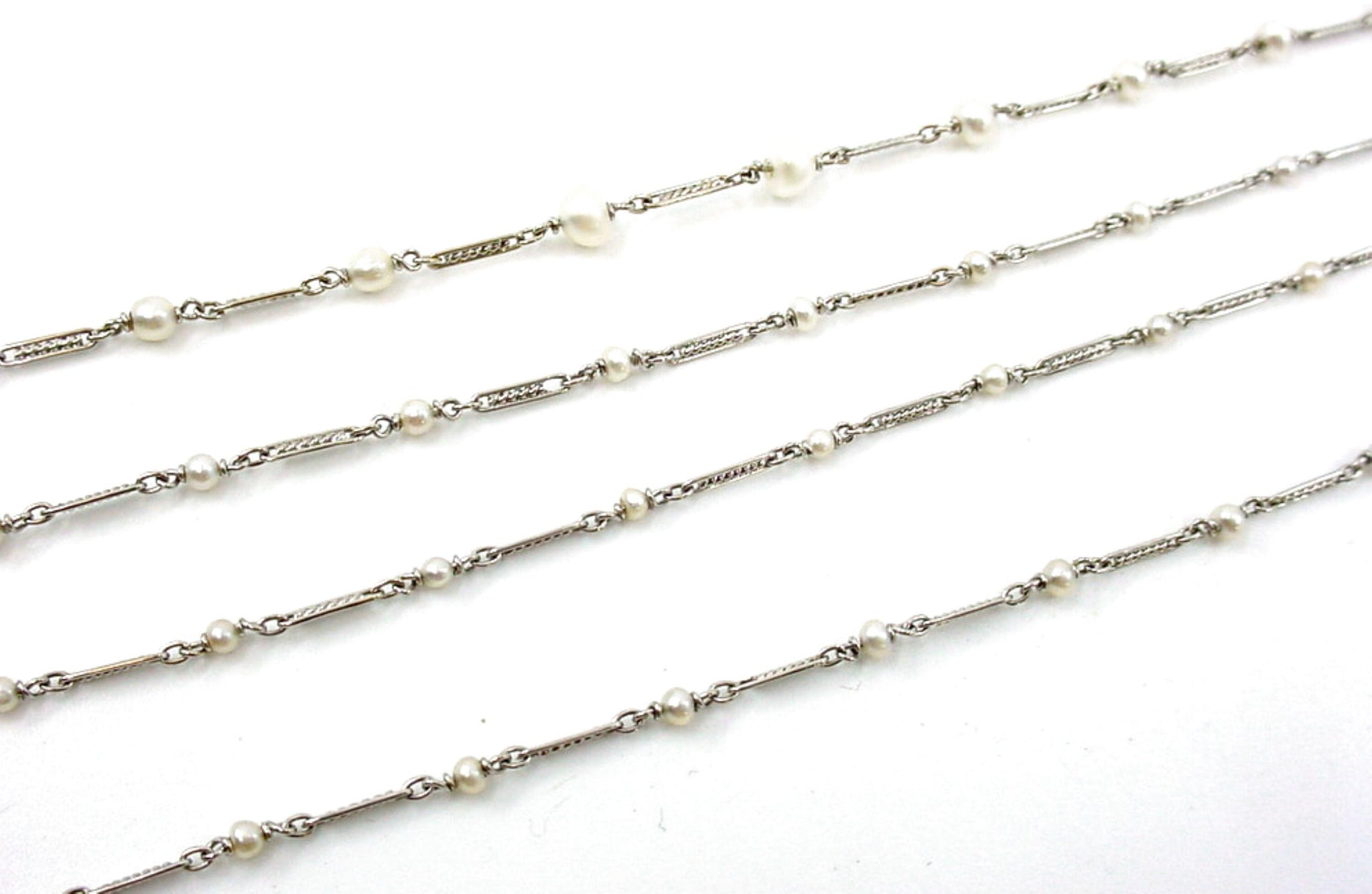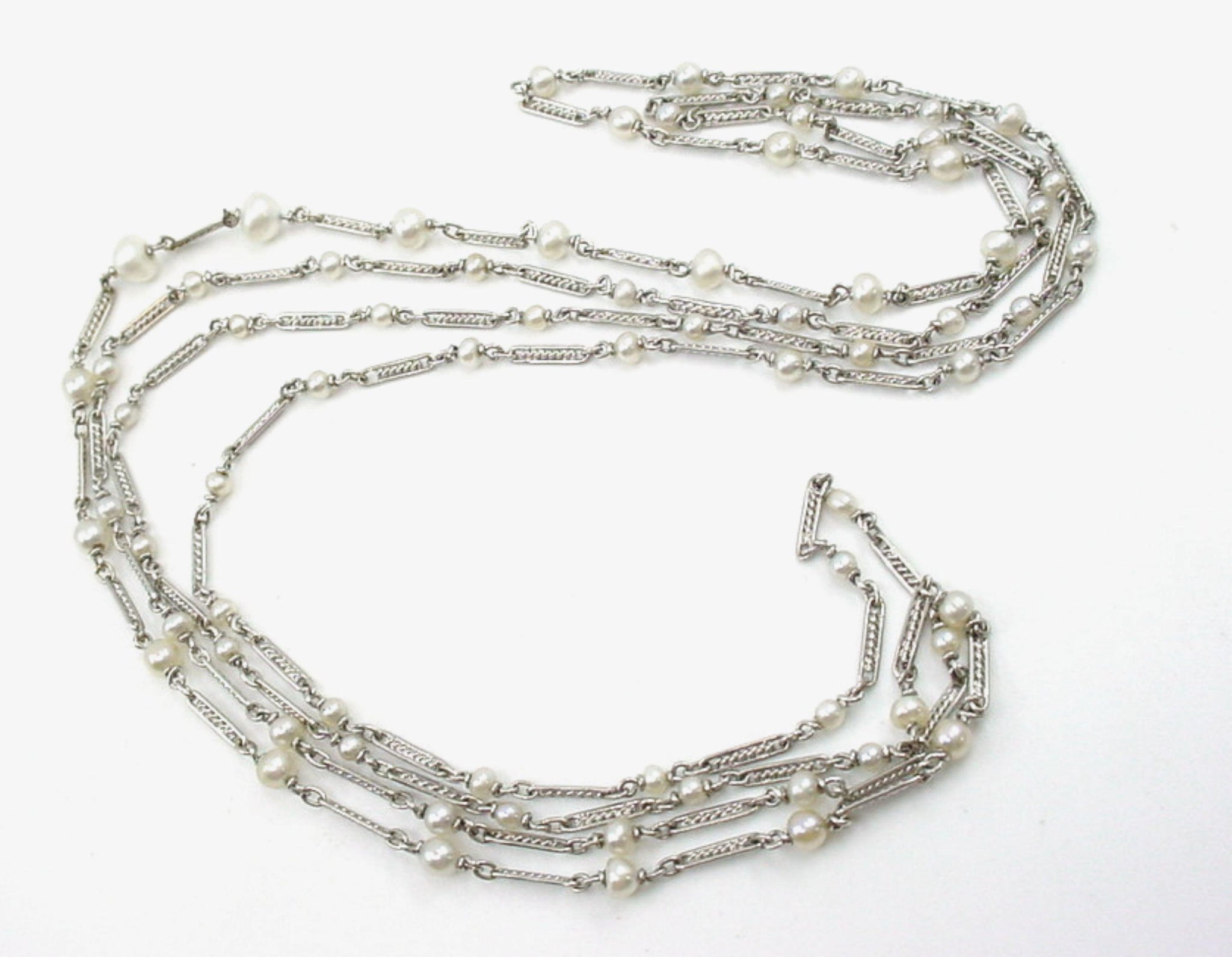 Elegant and wearable vintage pearl fancy link long-chain necklace~