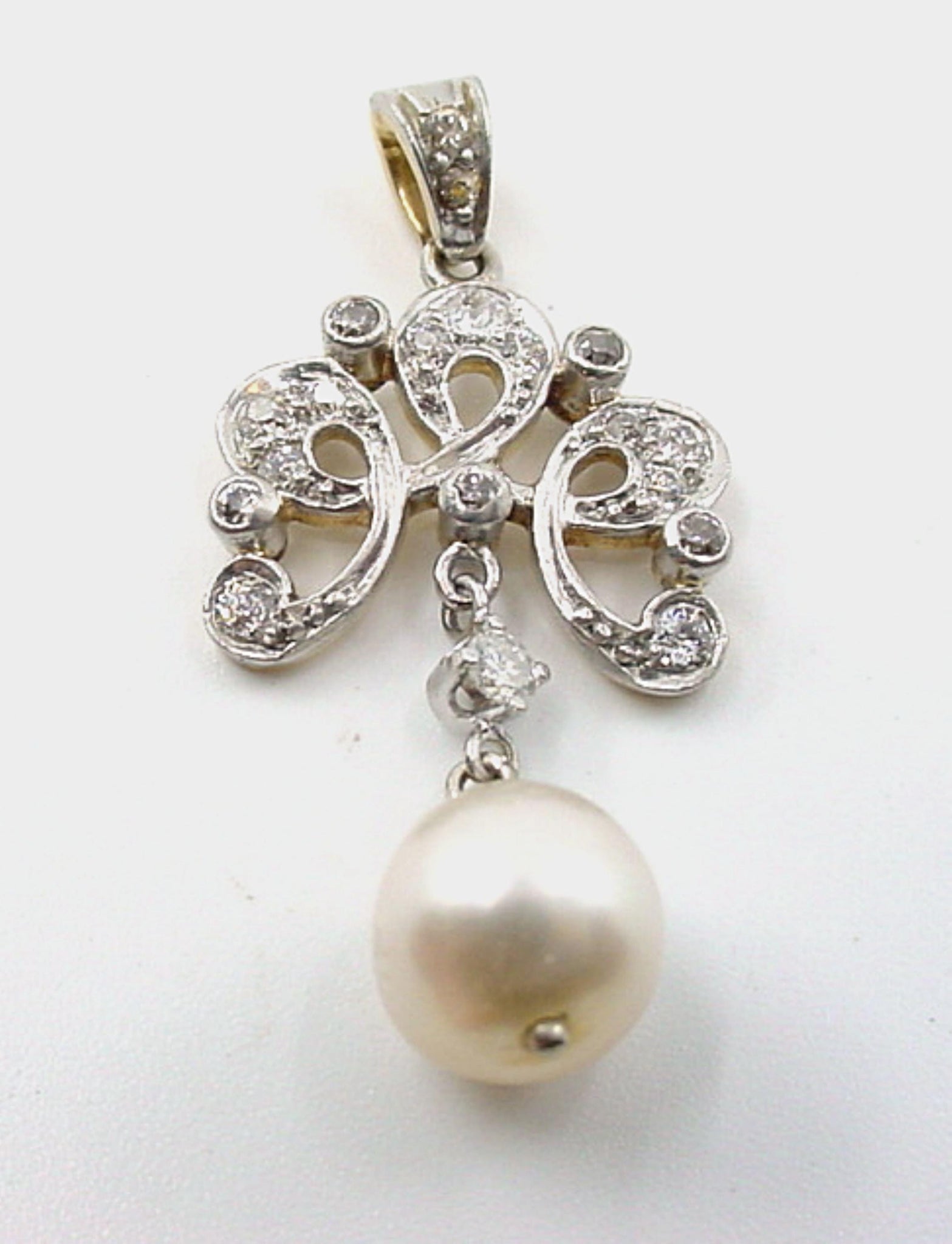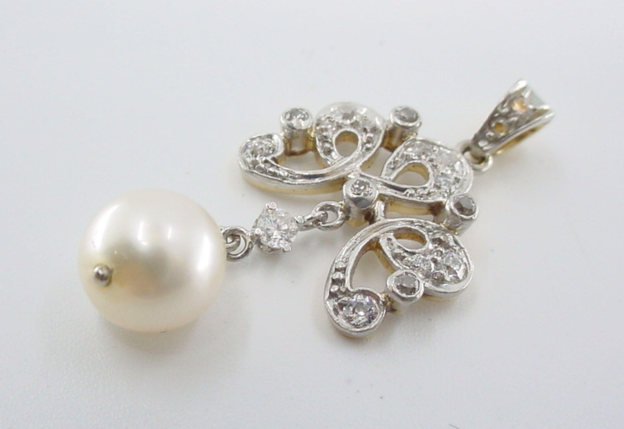 This lovely Edwardian example features a saltwater cultured pearl and sparking diamonds...