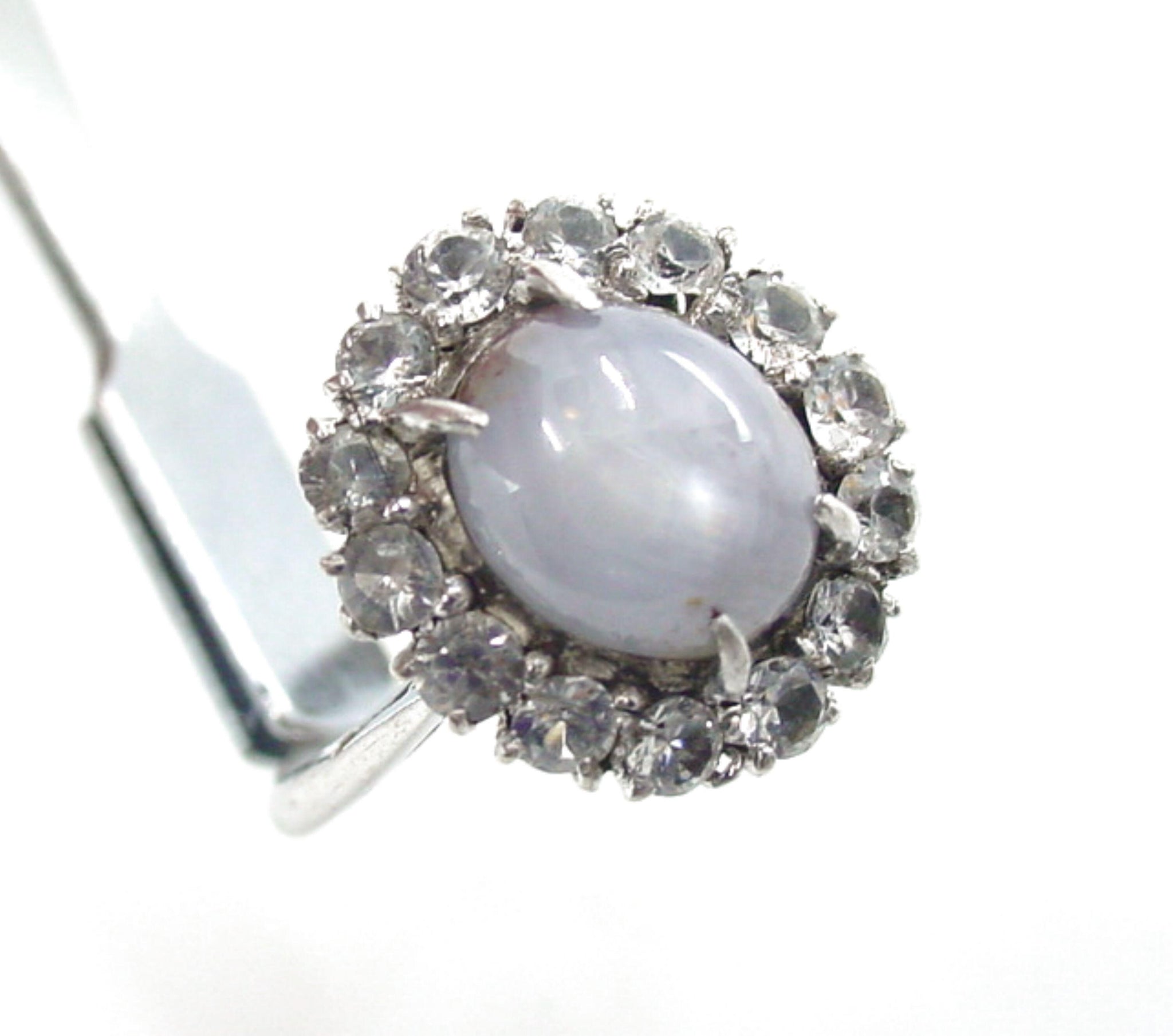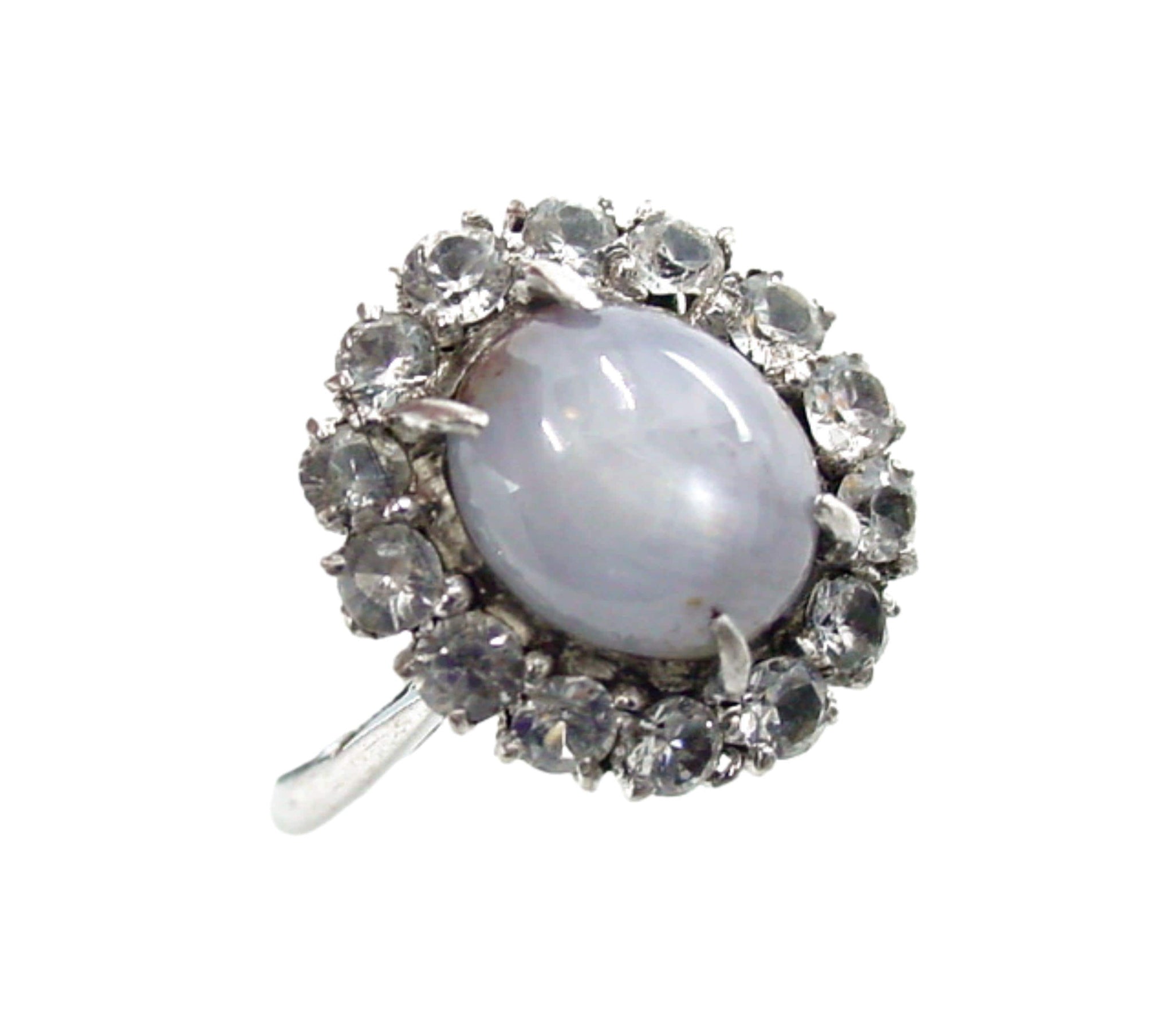 Edwardian Silver Star Sapphire Rosette Halo Strap Ring